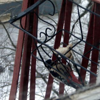 Катя, Ася, Юра – что это за чувачок спер у меня с балкона сало, развешанное для знакомых синиц? Трудился, сдирая с крючка, как шахтер в забое. Аж вверх ногами повернулся, обнаружив роскошные алые подштанники....