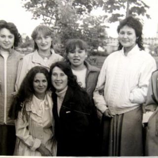 Первый курс. Парк Авиаторов, сразу за общагой. Толстощекая особа в нижнем ряду – я. А плащ у меня был как сервиз “Мадонна” – аж перламутровый. Вы таких и не видели, несчастные.