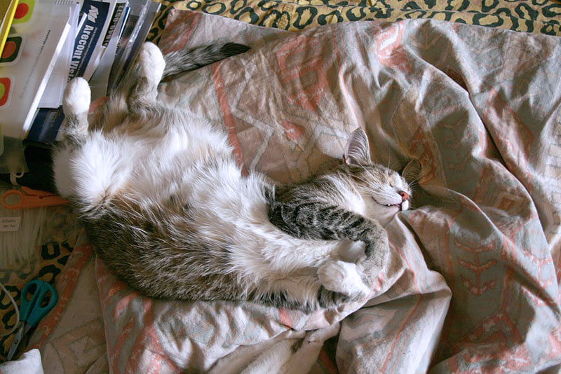 Что ты такое говоришь-то?! Как это не дома? А кто будет занимать кресло, и воровать колбасу, и кататься пузом кверху в солнечном пятне на полу, и заглядывать в сумки, принесенные из магазина?