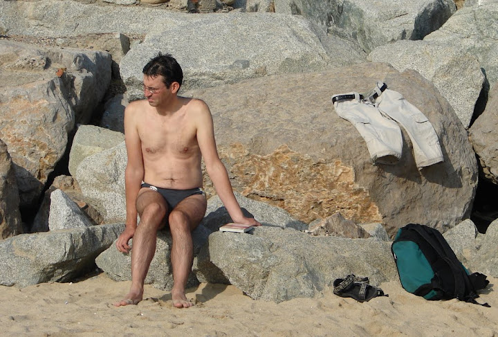 Я тоже в точности так же себя веду на пляже! Сижу одетый среди полезных вещей и читаю книжку.