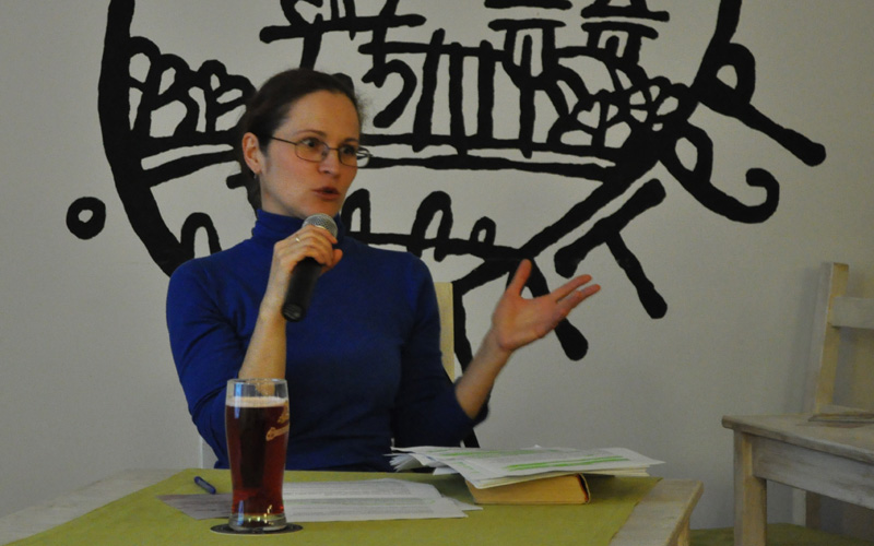 Вообще-то я животное норное. Так что когда Саша Силаев спросил: “Таня, тебе будет удобно за этим столом?” – с надеждой ответила: “Мне будет удобно под ним”. Но Саша такой эскапизм не поддержал. Он укрепил мой дух вишневым пивом и усадил за кафедру, прямо перед слушателями. Лицом к лицу. Как у Достоевского – десять тысяч лиц, десять тысяч глаз, – всё это надо перенести.